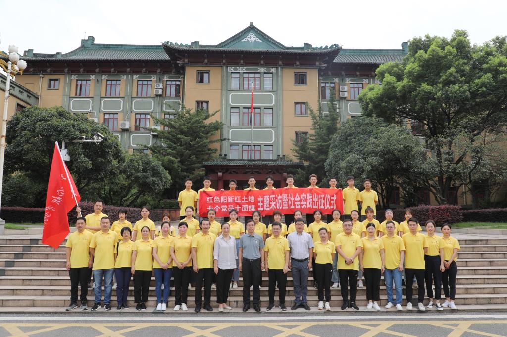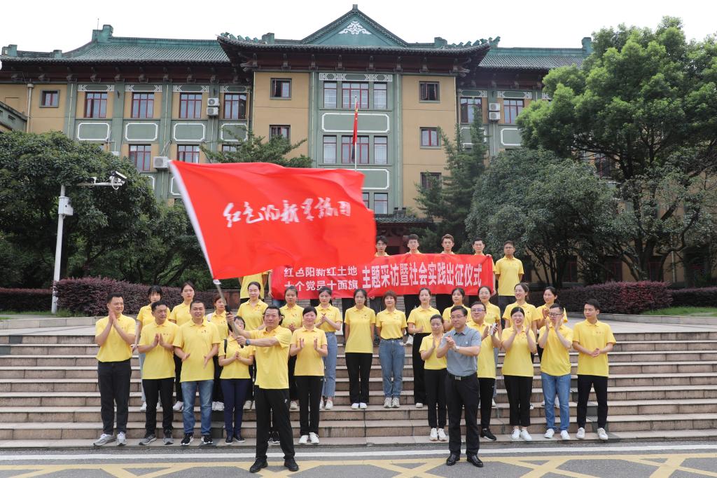 新闻网讯(通讯员孙萌)7月12日上午,武汉体育学院新闻传播学院2021“红色阳新”大型主题采访暨三下乡社会实践活动出征仪式在行政楼门前举行。党委常委、副院长刘彦博为实践队授旗,新闻传播学院党委书记童铸主持,学校相关职能部门负责人参加仪式。